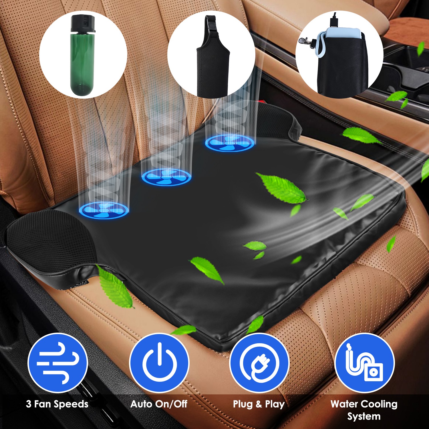 Summer Water Cooling System Seat Cushion With Fans 3 Speeds 26°C/78°F Constant Temperature USB Plug Portable Auto On/Off Ventilated Seat Cushion For H