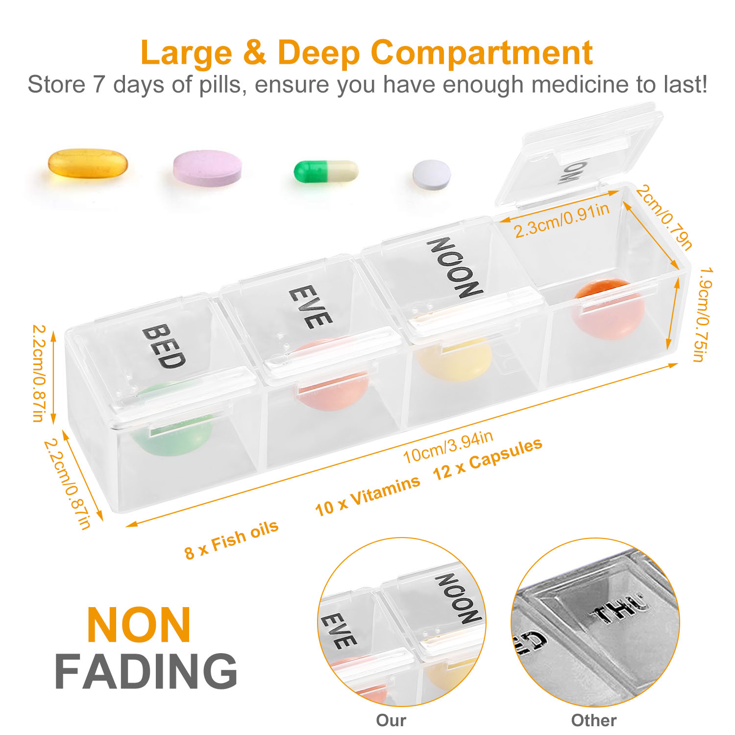 Pill Organizer Size: 10x2.2x2.2cm/3.94x0.87x0.87in (L×W×H)